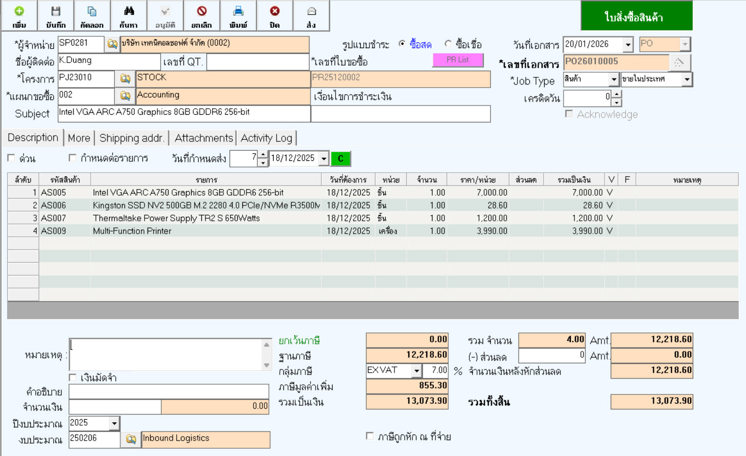 iPro โปรแกรมบริหารงานฝ่ายจัดซื้อ (PURCHASE MANAGEMENT)